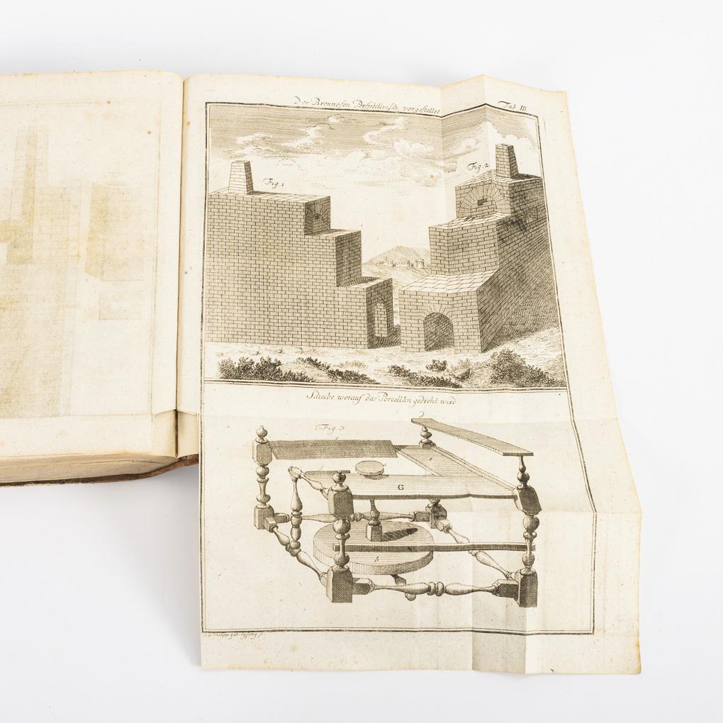 "The art of making the genuine porcelain by the Lord Count of Milly" 331-472 pages and 8 plates. Half leather binding. Preliminary leaf cut off, good condition for age.