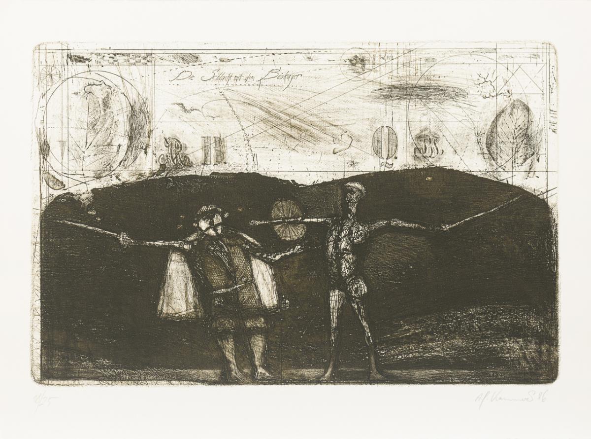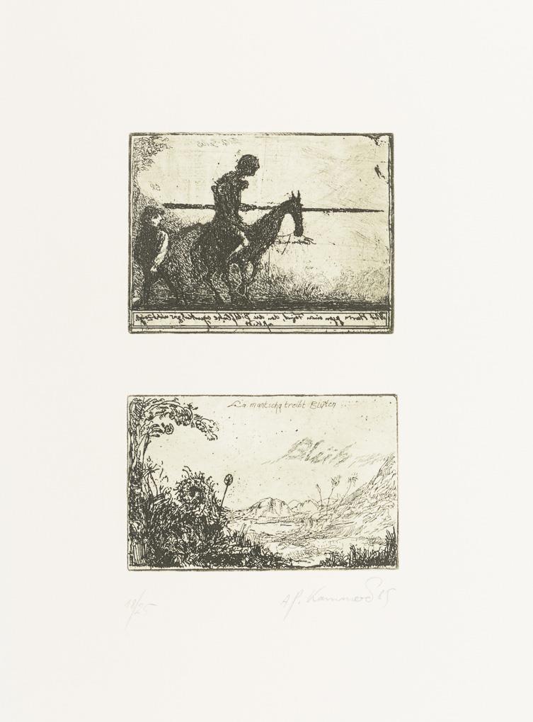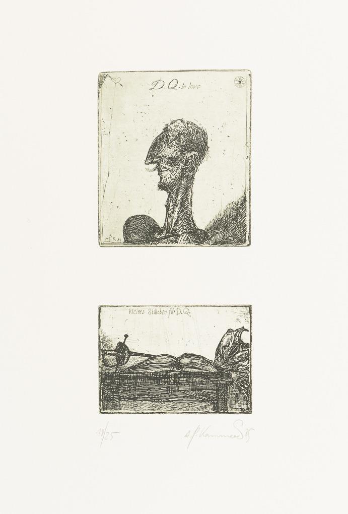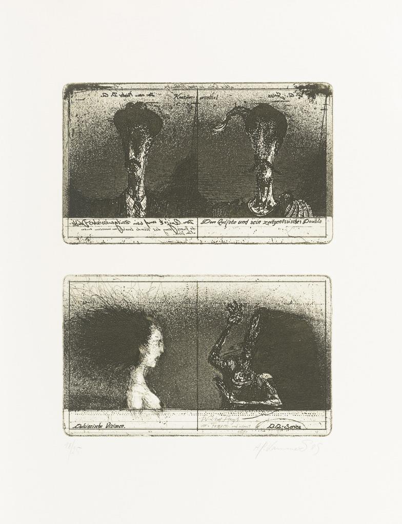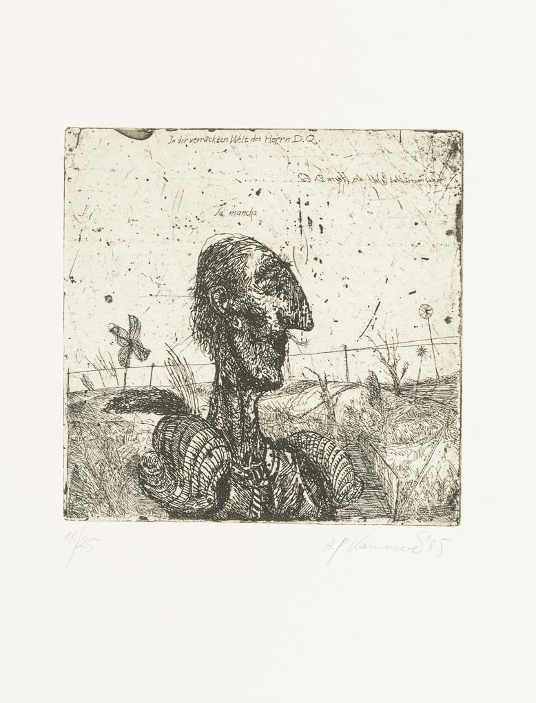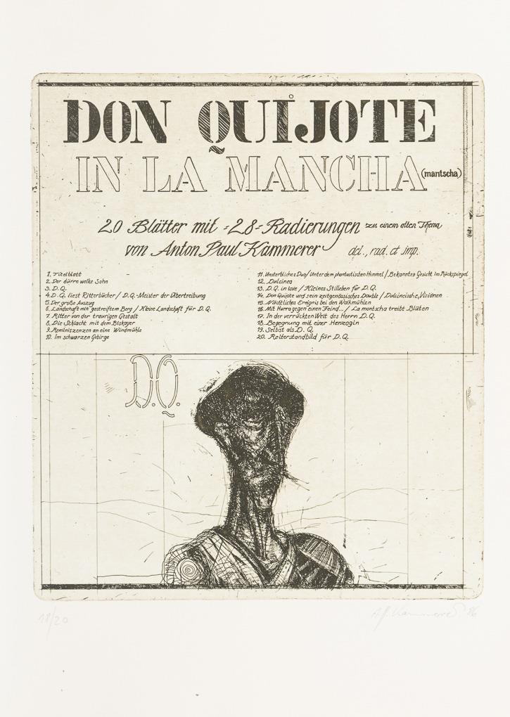 Original, complete portfolio with a cycle of 20 leaves and 28 etchings on the novel "The Sensible Junker Don Quixote of La Mancha" by Spain's national poet Miguel de Cervantes (1547-1616).