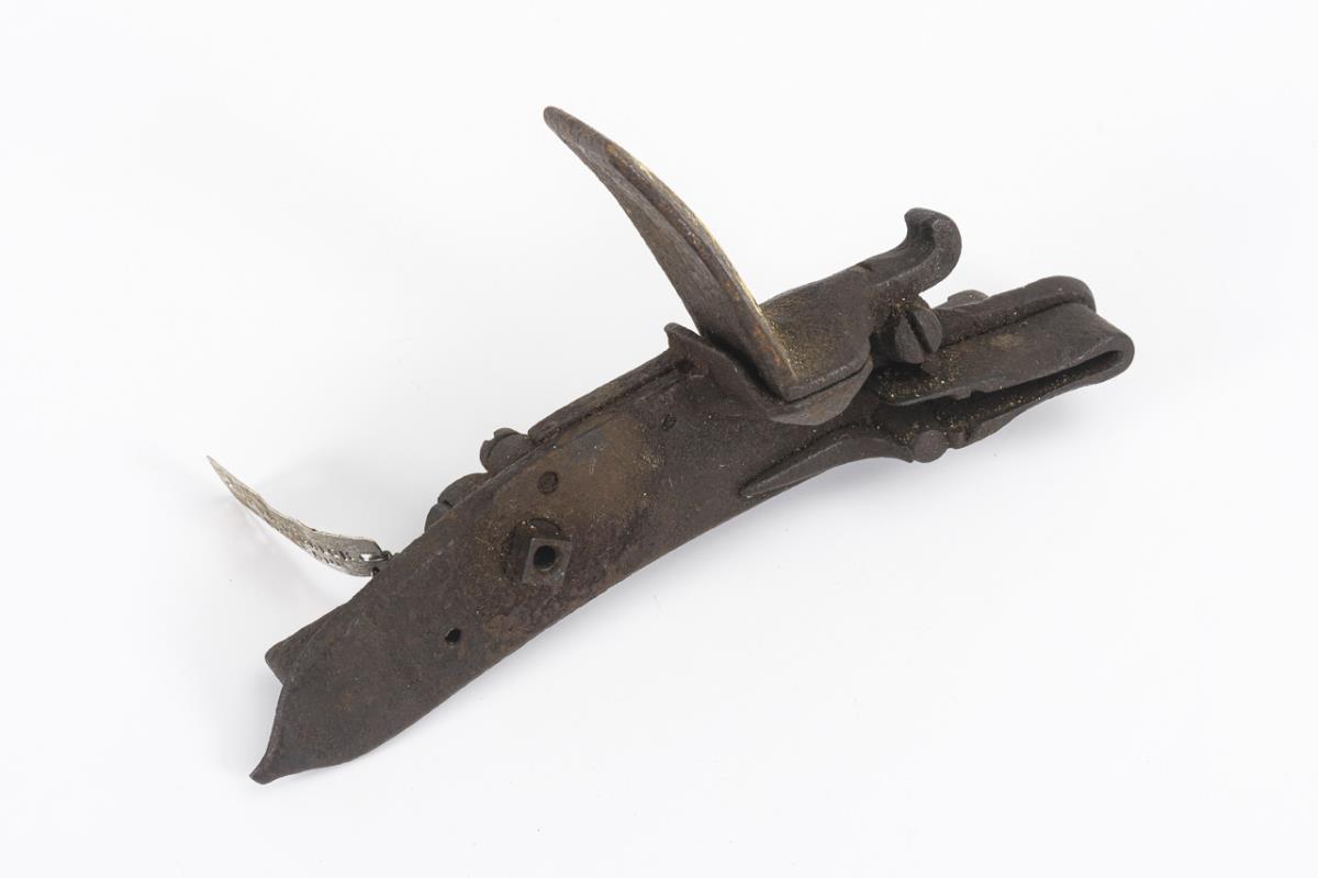 Mechanism without cock, in need of restoration. Corroded.