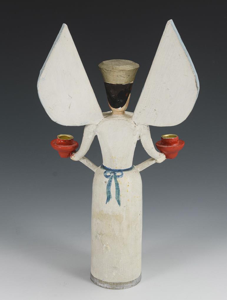 Twist figure with wings and 2 candle sleeves. Repainted, 1 dry crack.