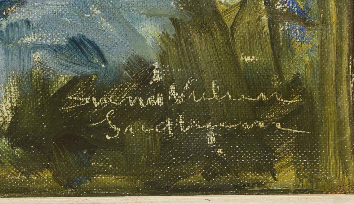 Oil/canvas. Signed lower right with indistinct addition.
