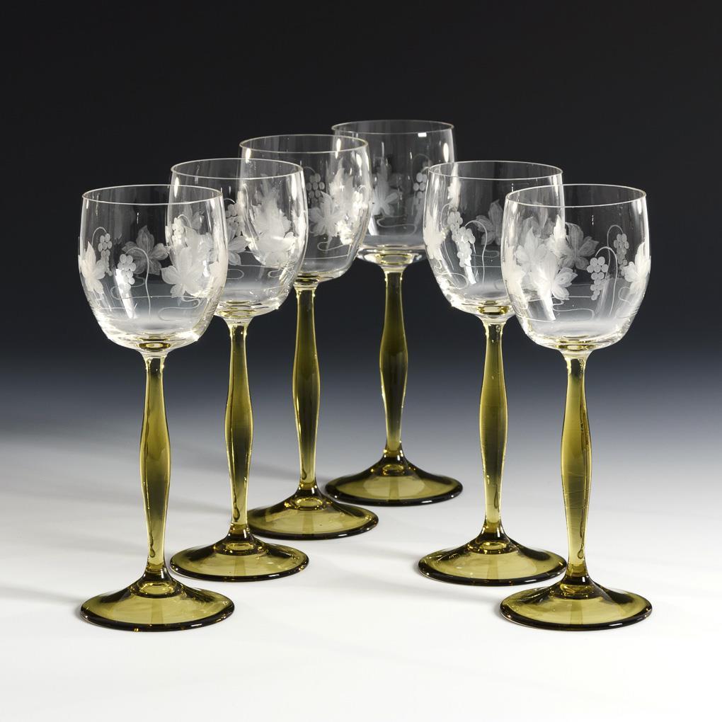 6 Art Nouveau Wine Glasses. Cologne-Ehrenfeld.