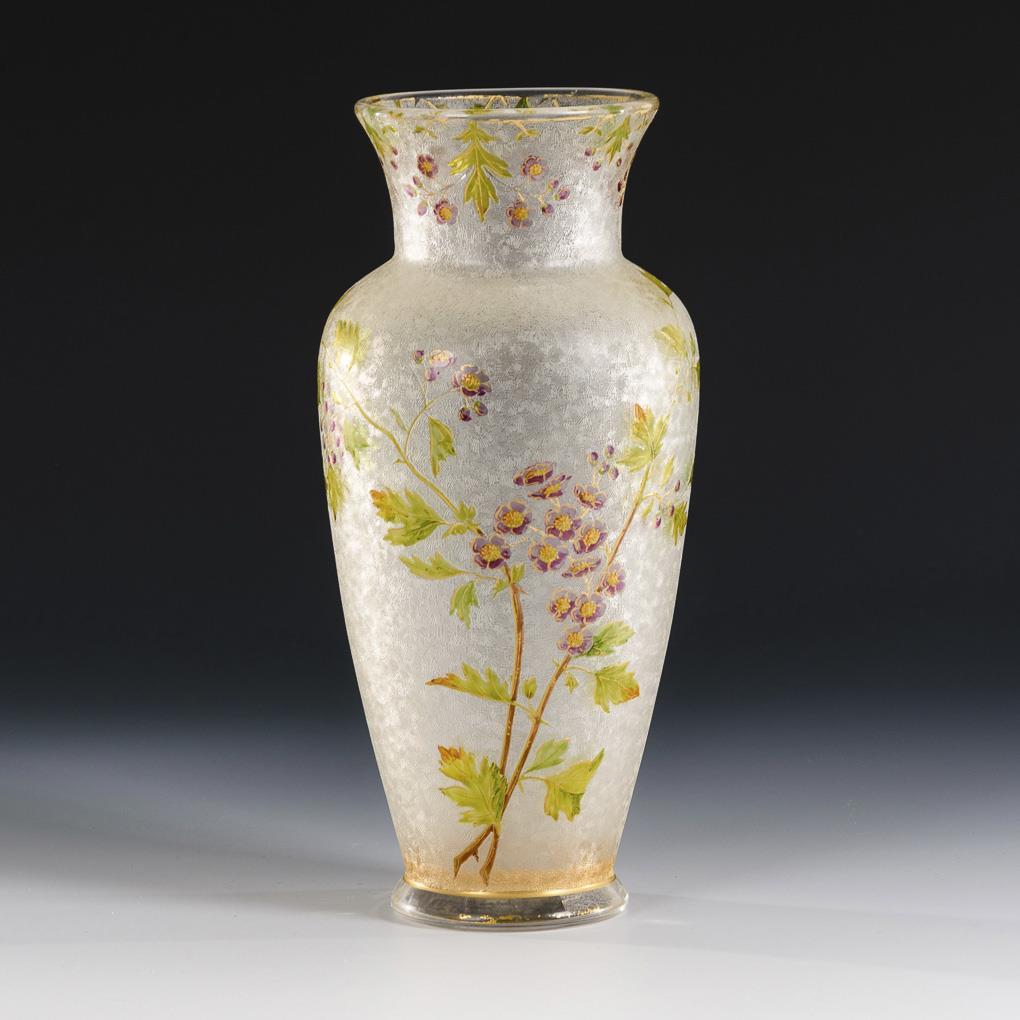 Art Nouveau vase with floral decor. Baccarat.