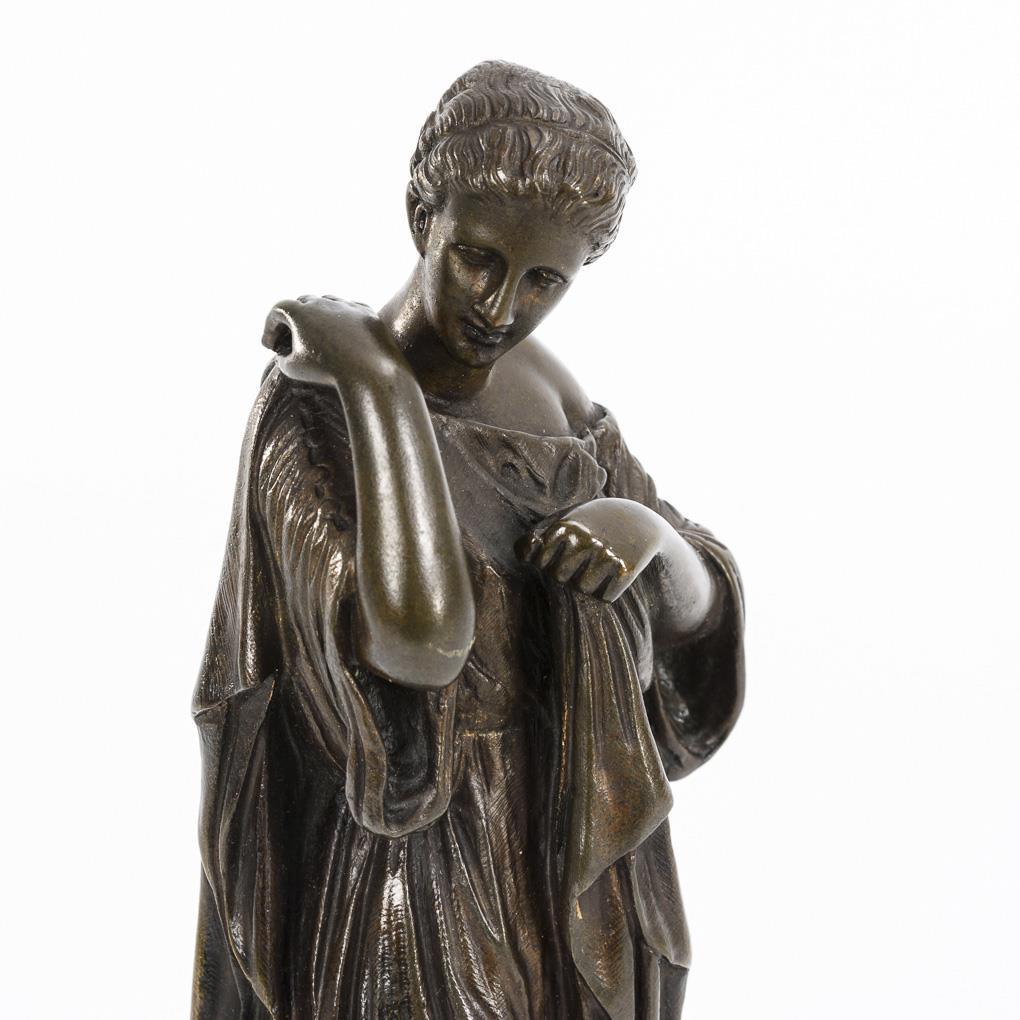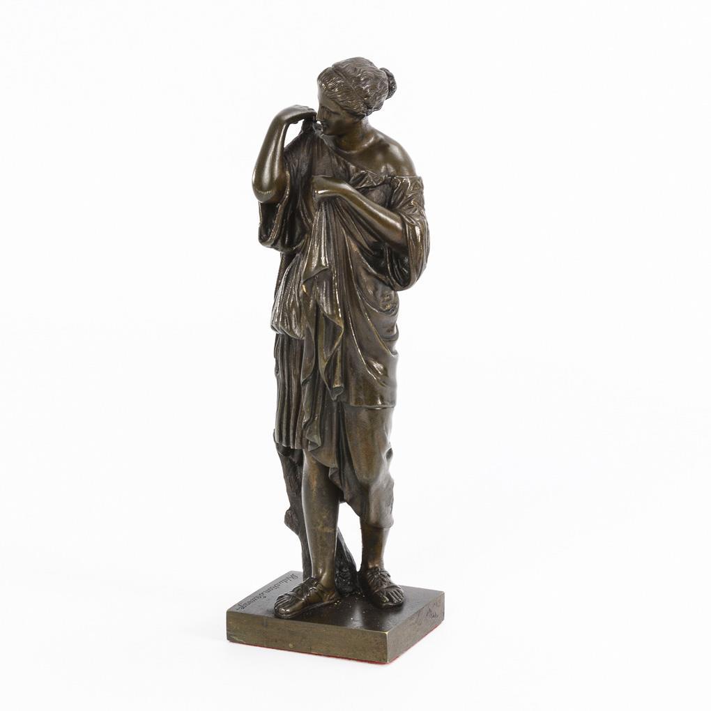 After the antique statuette "Diane de Gabies" by Praxiteles in the Louvre. Signs of age/use.