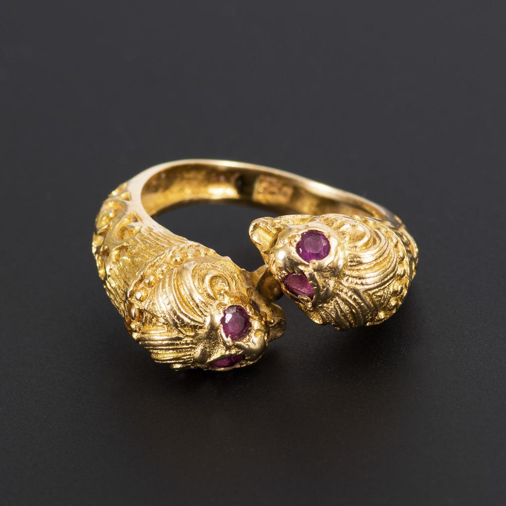 Stamped yellow gold 750. Ring size 56. 9.3 g.