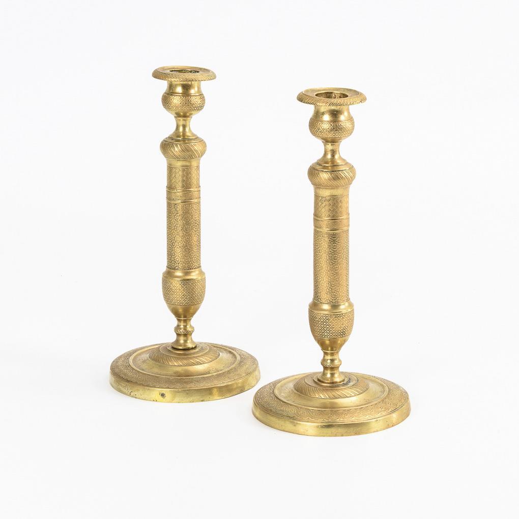 Bronze candelabra. decorated with fine relief fornament, minimal signs of age/use.