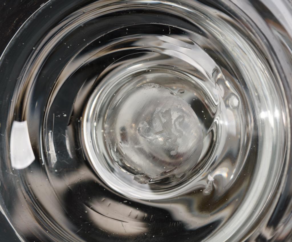 Konische Kuppa mit im Boden eingestochener Luftblase, nodierter Schaft mit eingestochener Luftblase, Glockenfuß mit umgeschlagenem Rand, Abriss.