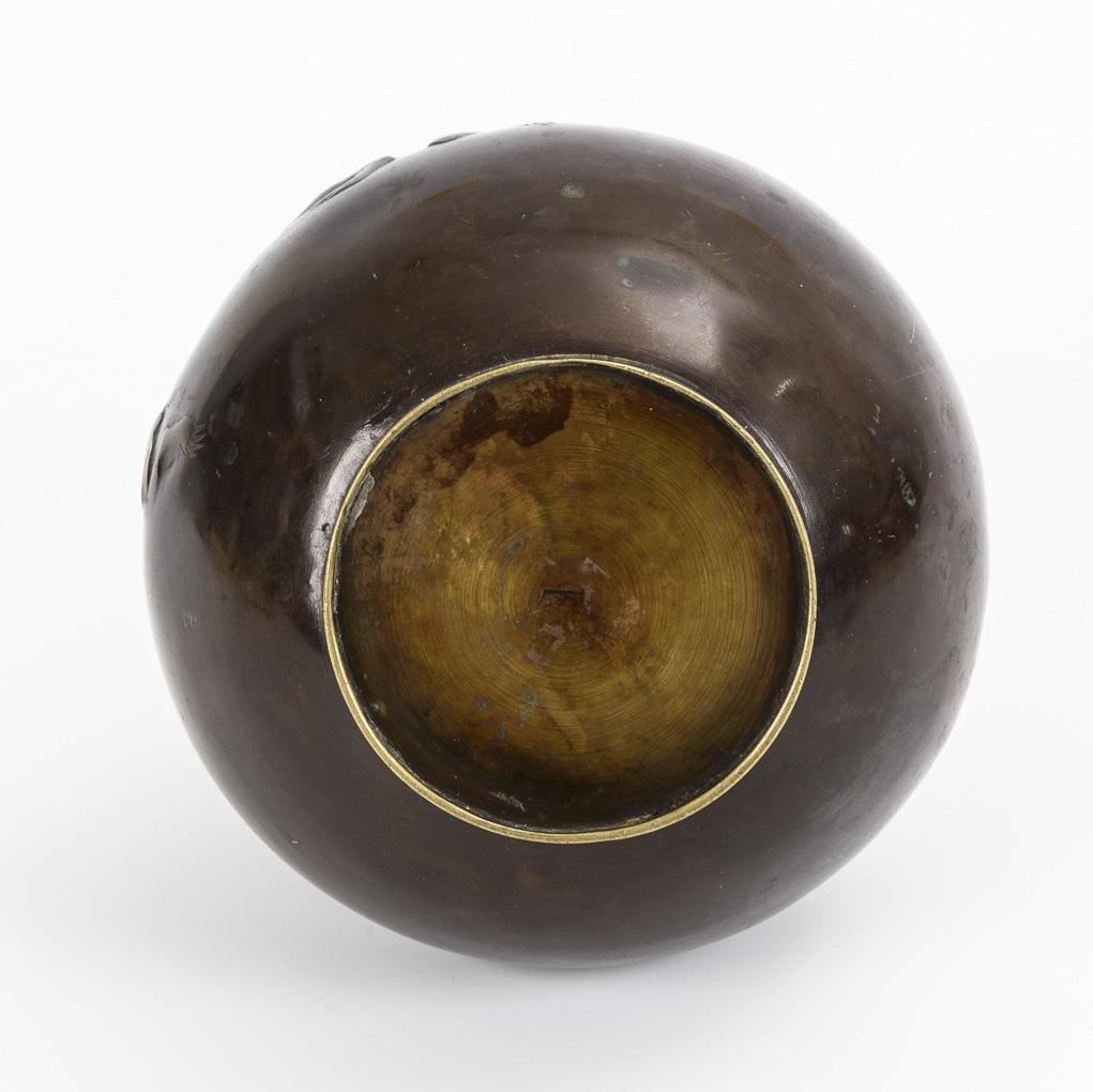 Bellied vase with a relief row of ascending frogs. Some signs of age/use.