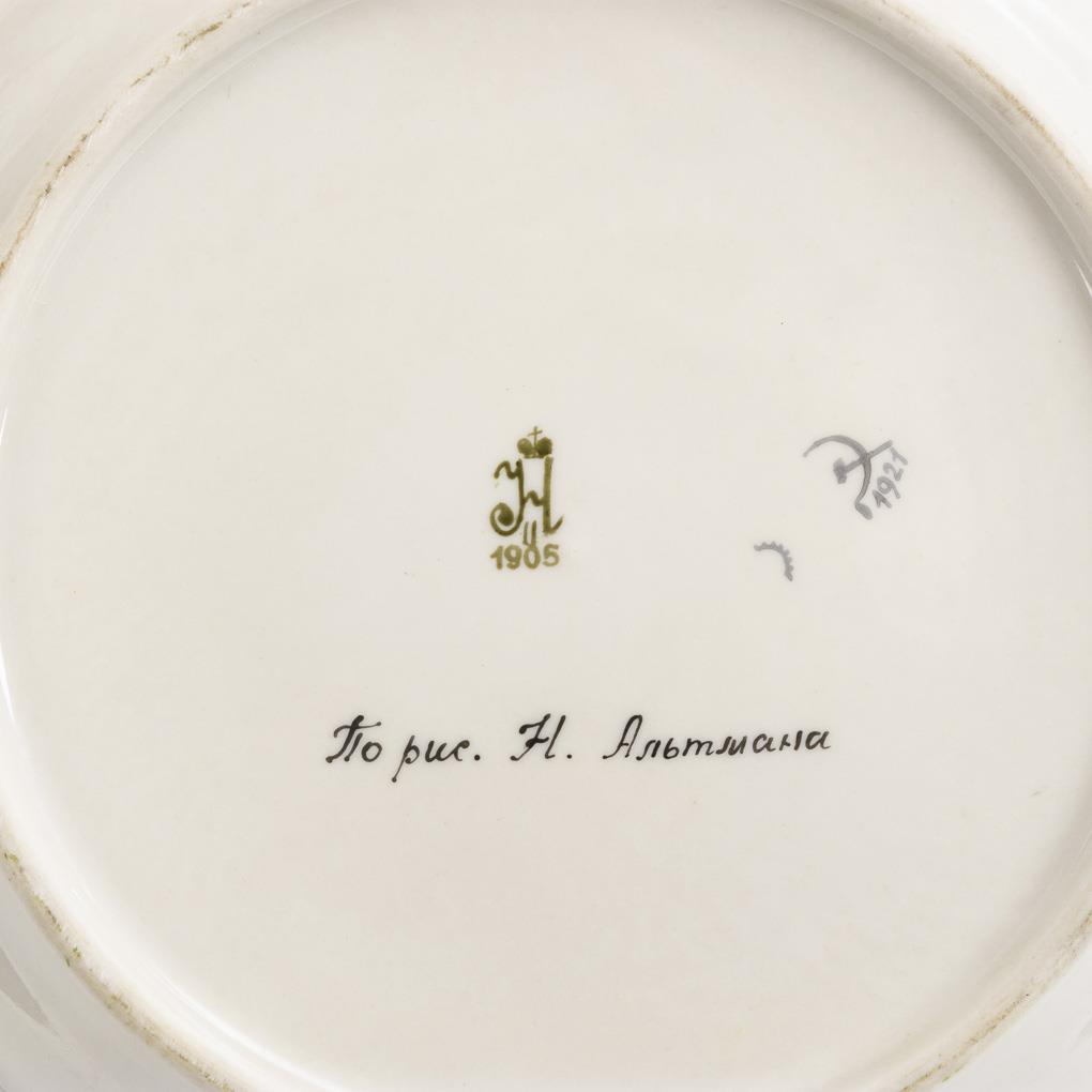 Painted mark Nicholas II /St. Petersburg 1905 and hammer/sickle mark 1921. Cyrillic signed "po rus. N. Altmana" (= Natan Isaevich Altman, 1889-1970).