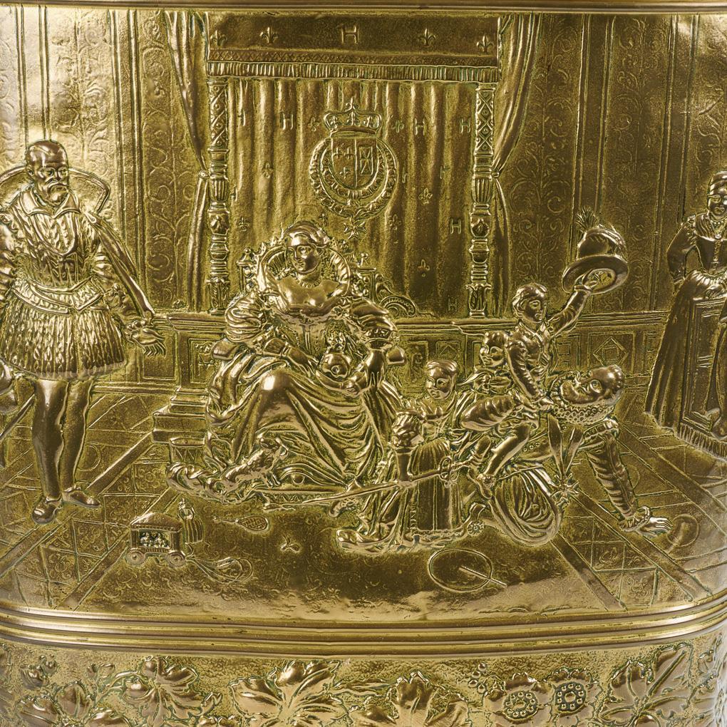 Oval body with surrounding floral base zone. Both sides equally relieved with courtly scene: King Henry IV of France at play with his children receiving the Spanish envoy (after the painting by Jean-Auguste-Dominique Ingres). Overlay rubbed, signs of age/use on base.