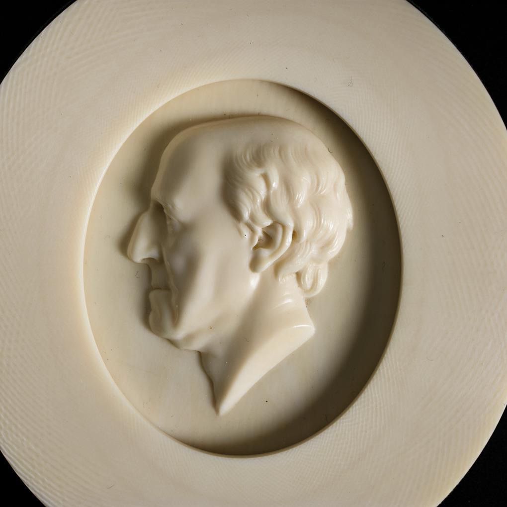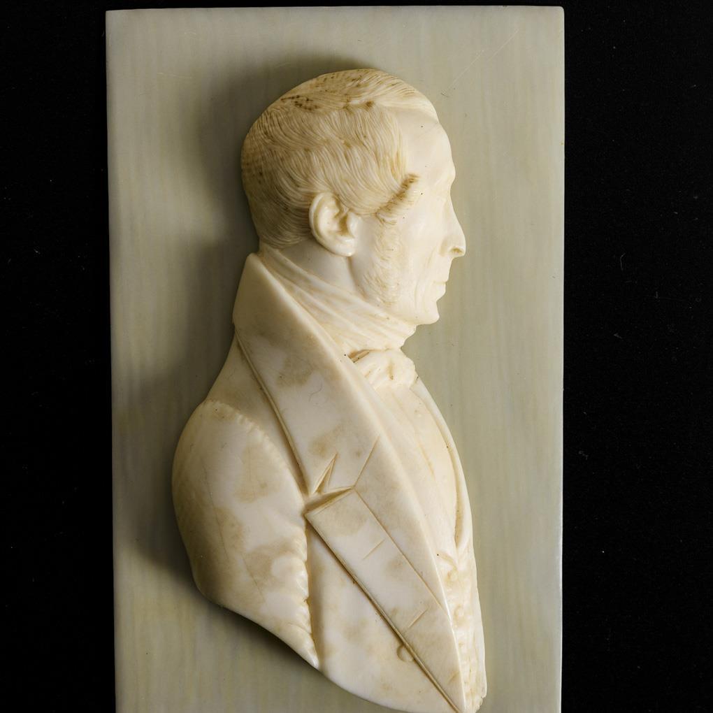 3 carved ivory gentleman portraits.