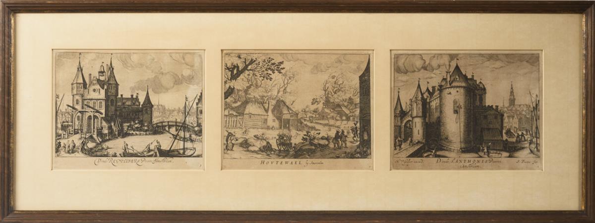 3 of 5 depictions of a series on Amsterdam and surroundings: "D'oude Regulliers Poorte t'Amsterdam" | "Hovtewael by Amsterdam" | "D'oude St. Anthonis Poorte t'Amsterdam".