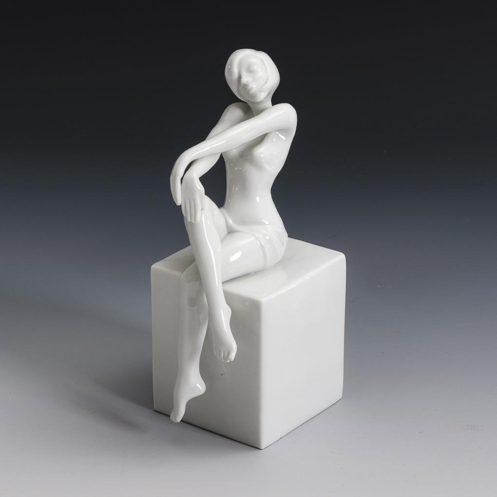 From the series "Eros". On a cuboid sitting, lightly dressed young lady.