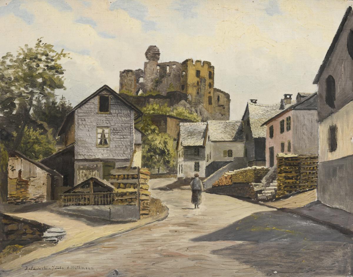 Oil/loose canvas, pencil drawing, one etching. Once signed "A. Muthmann." Late 19th c.