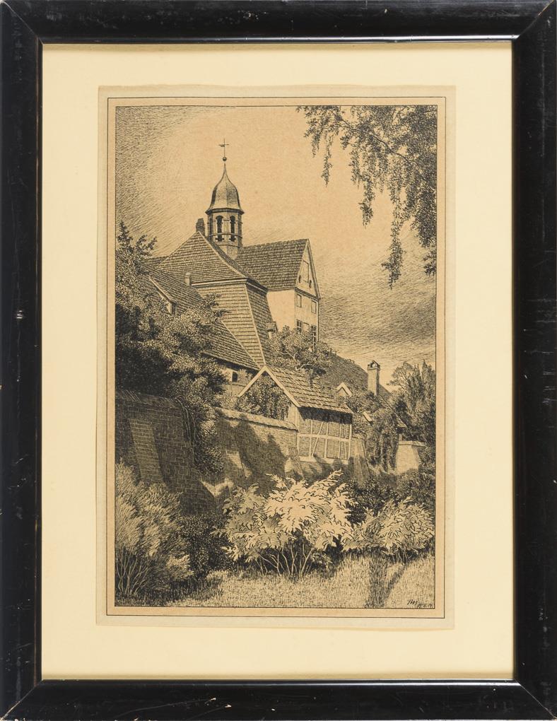 Ink drawing. Ink monogram. dated "15.II.[19]14".