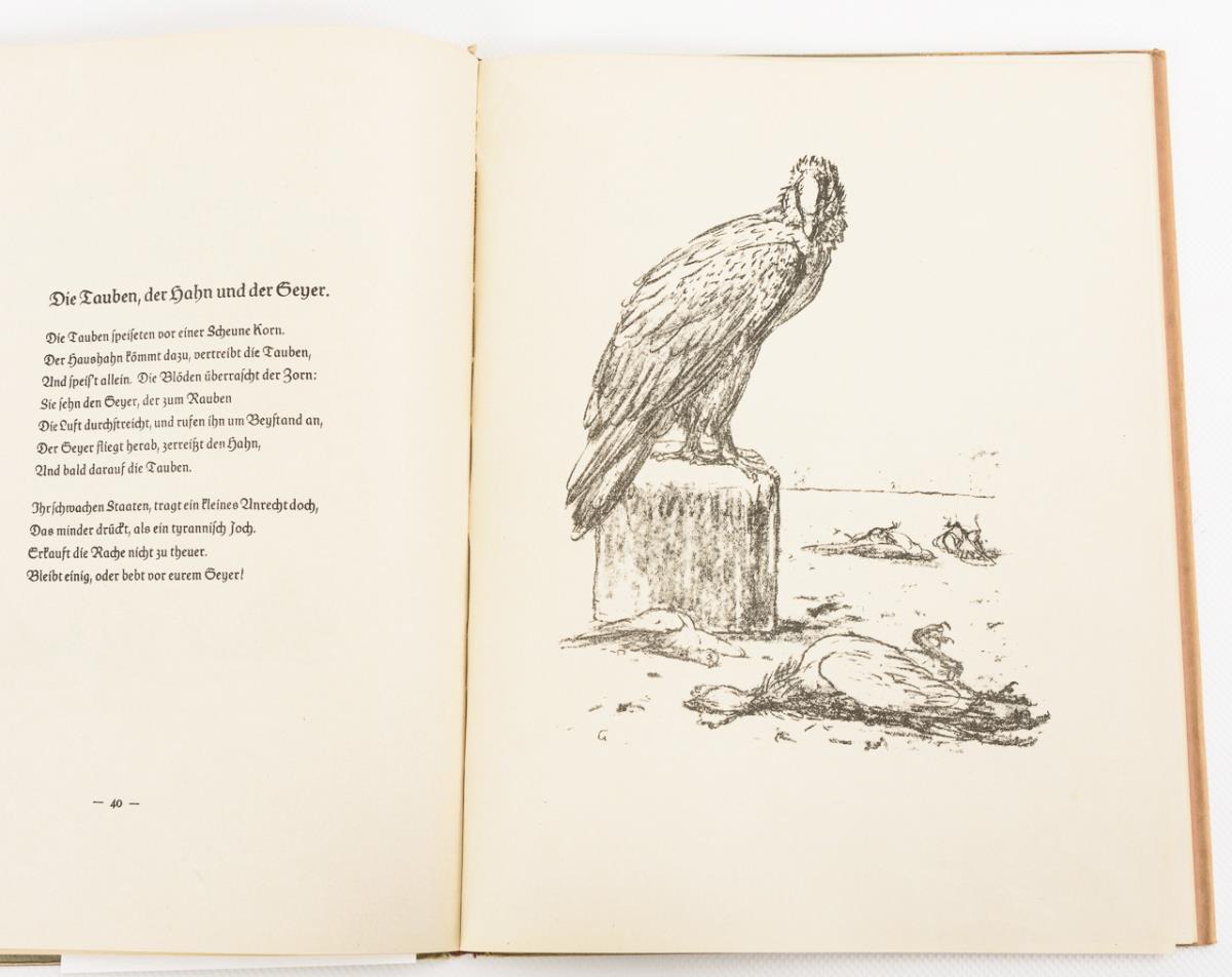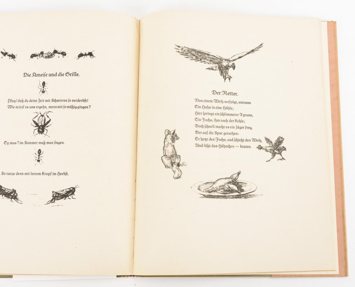 Bound book - Old Animal Fables. From Karl Wilhelm Ramler's Fabellese, Leipzig 1783. with stone drawings by August Gaul, Paul Cassirer 1920, 106 pp; with original dust jacket. Slightly damaged dust jacket.