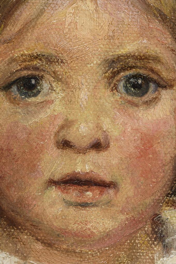 Portrait probably of the artist's daughter with red ribbons in her hair.