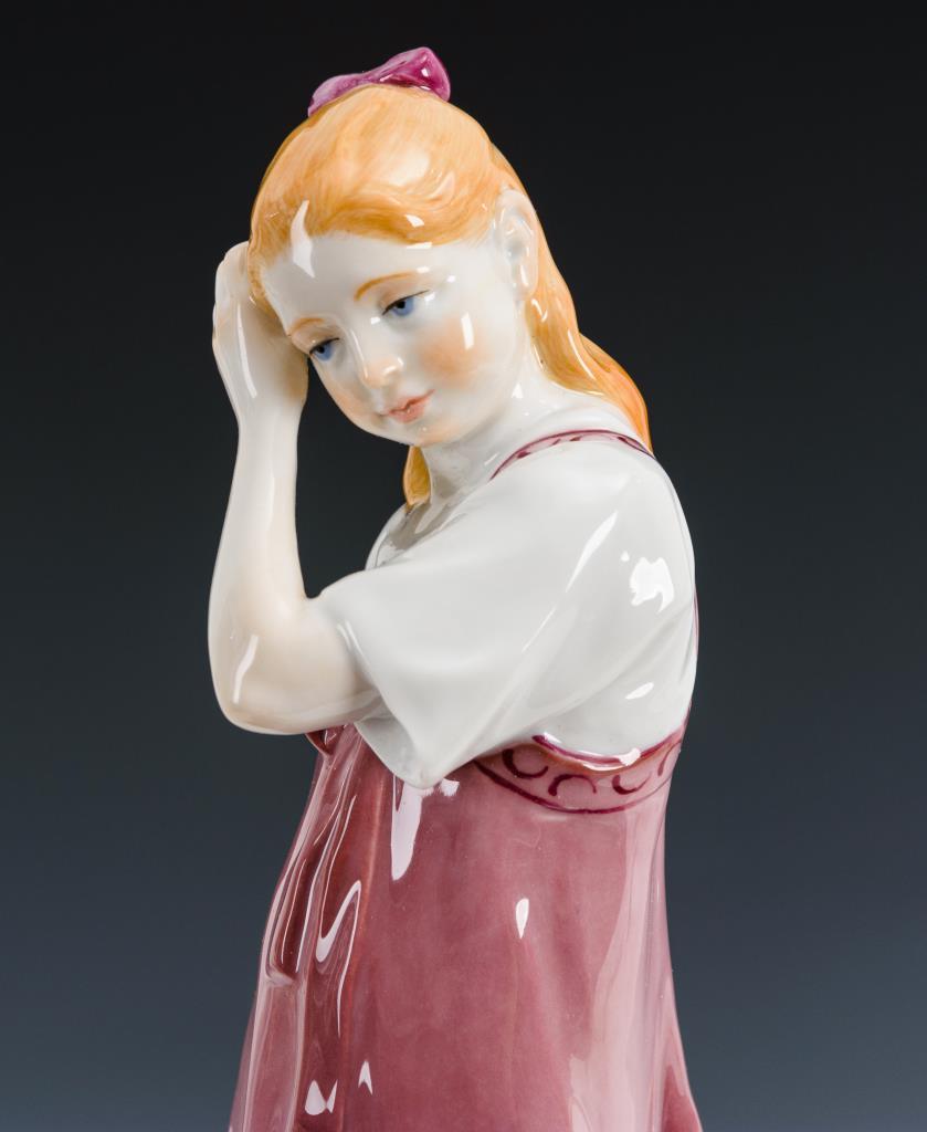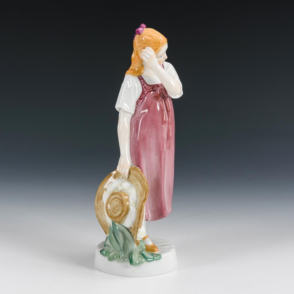 Auf einem Rundsockel stehendes, einen großen Strohhut tragendes Mädchen.