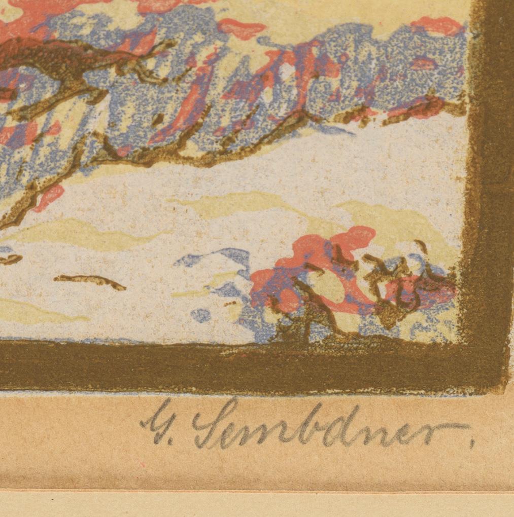 Original color woodcut on Japan paper. Pencil signature. Hand printed, embossed stamp "Wohlgemuth & Lissner Berlin".