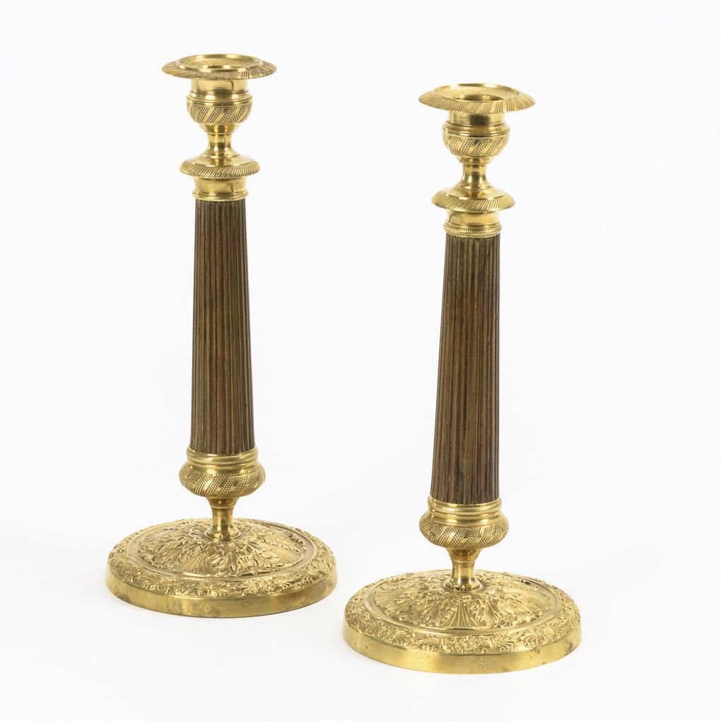 Rich acanthus-relief foot, patinated shaft with fluting, vase spout with fine decoration. Few signs of age/use.