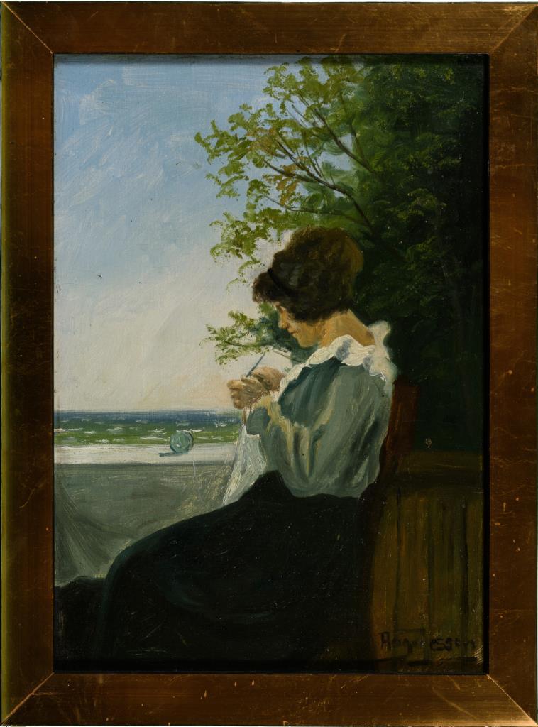 Strickende mit Blick aufs Meer