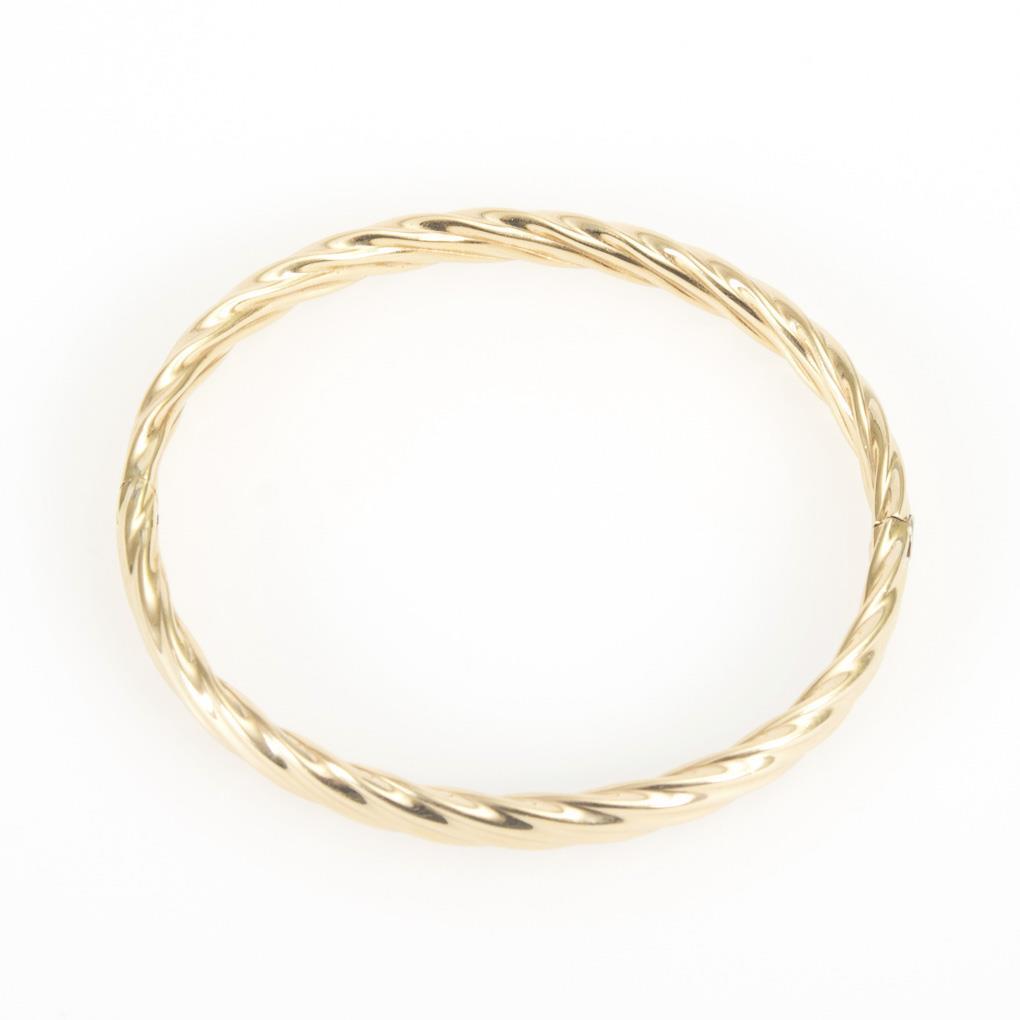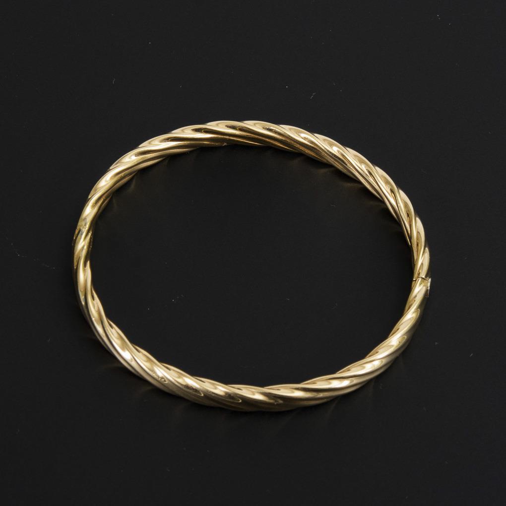 Stamped yellow gold 585. Ø 6 cm. Width 0.6 cm. 12,5 g.