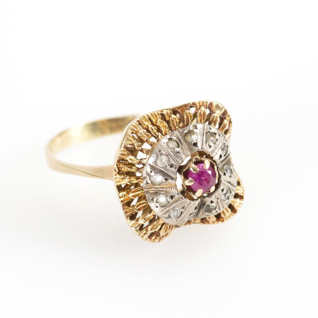 Tested yellow gold/white gold 585. Hallmark indistinct. Ring size 60. 5.3 g.