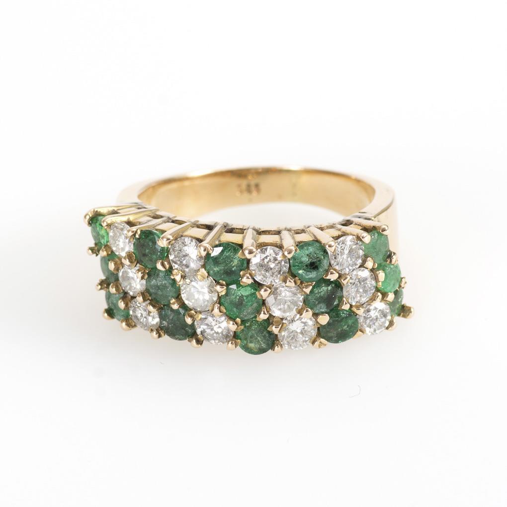 Stamped yellow gold 585. Diamonds total approx. 1.2 ct. Ring size 56. 8.6 g.