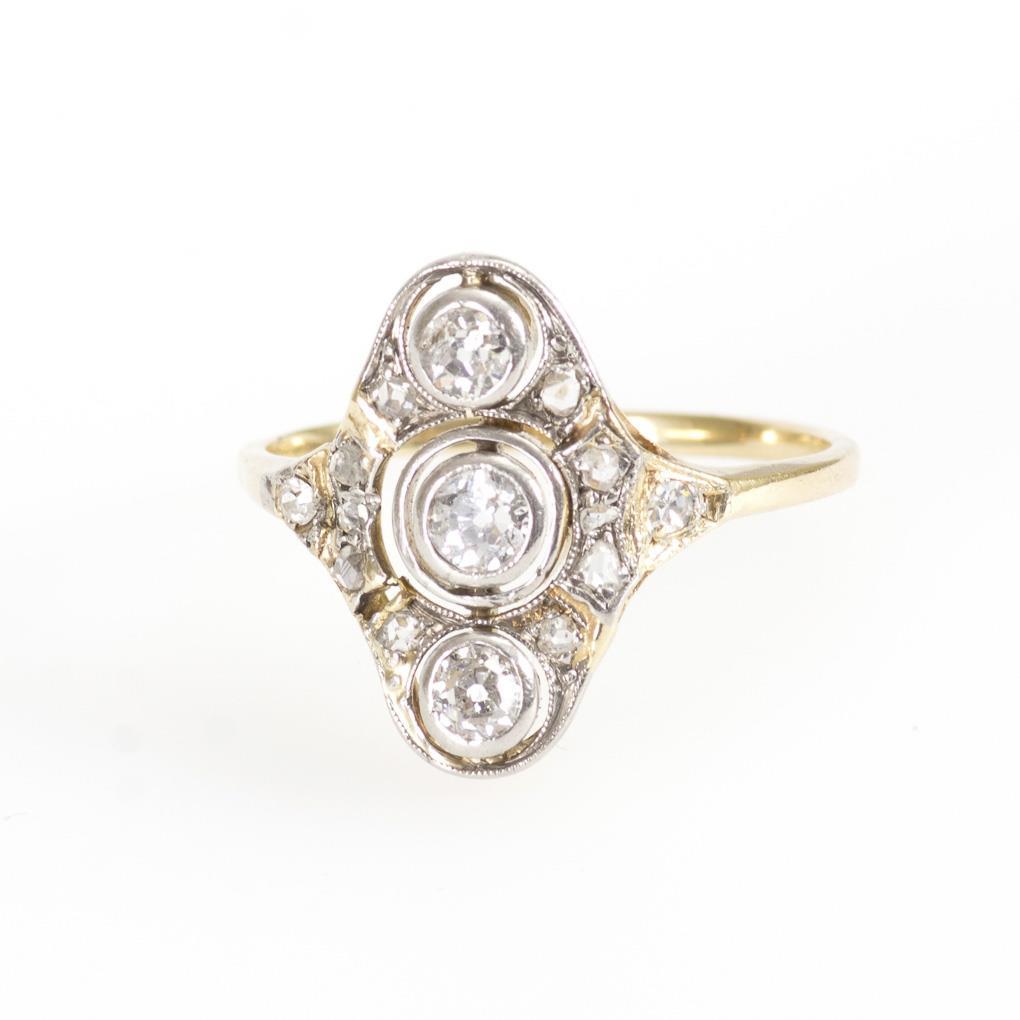 Tested yellow gold 585. Old-cut diamonds total approx. 0.33 ct. Ring size 53. 2.1 g.
