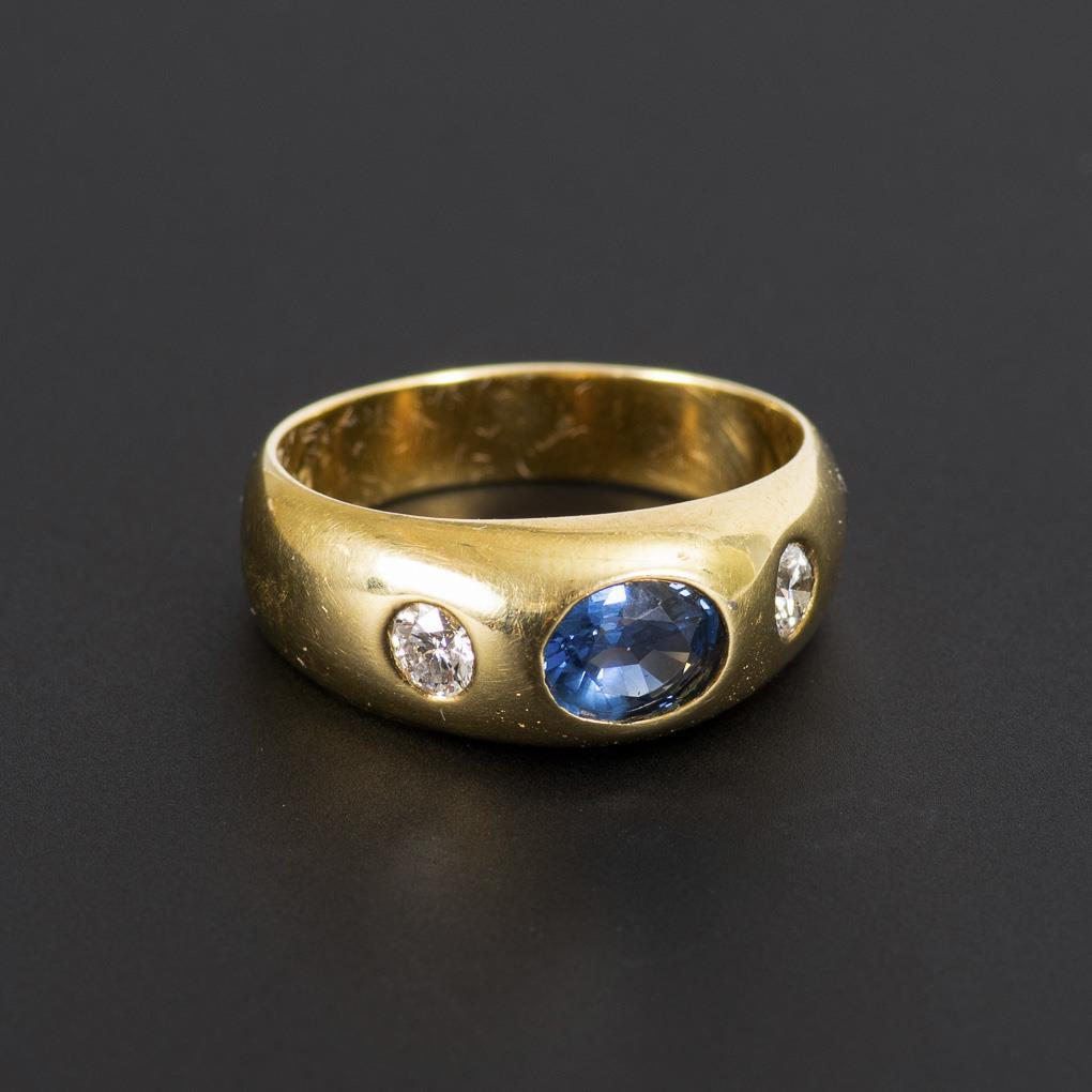 Classic band ring with sapphire and diamonds.