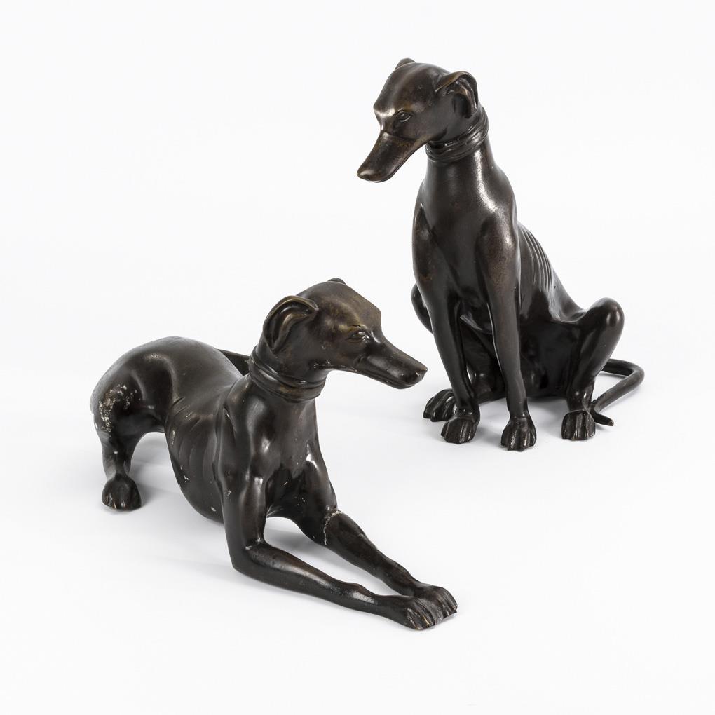 Metal cast black-brown patinated. H 28 and 18 cm respectively.