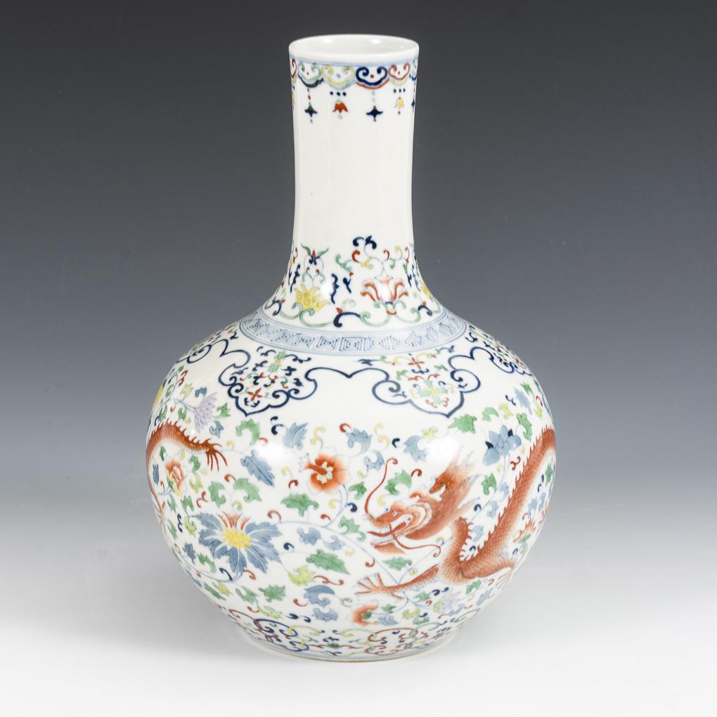 Vase with two red dragons.