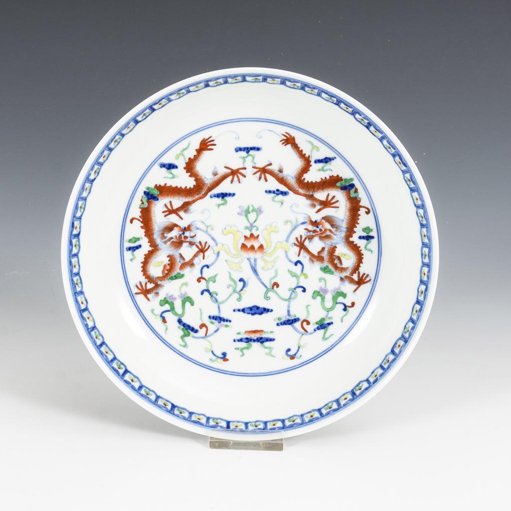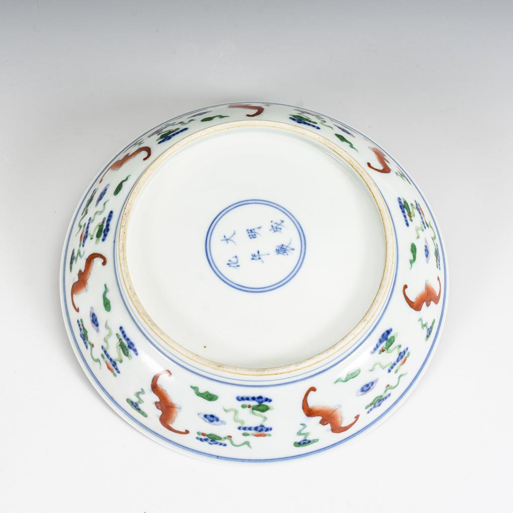 Fine underglaze blue painting, coloured with five different colours. Underside with stylized bat motif. Porcelain translucent.