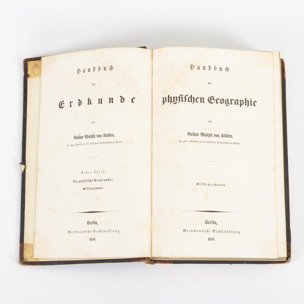 Includes: Physical Geography, 995 pp. / Country and state studies of Europe, 1394 pages / Country and state studies of Asia, Australia, Africa and America, 895 pages. All in uniform half leather binding. Stronger signs of use, one spine somewhat torn.