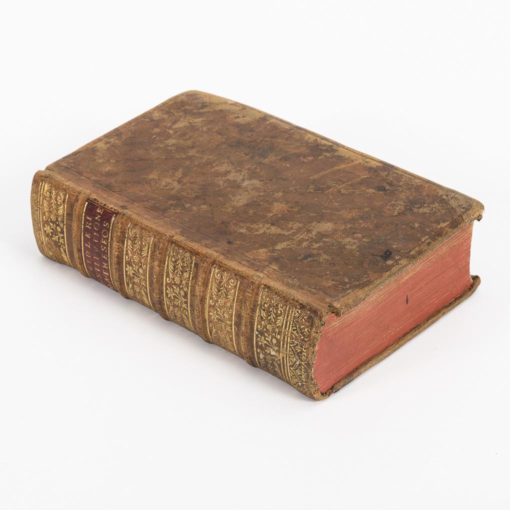 (6), 756, (18), 32 (logarithms) pages with numerous formulae and 52 full-page illustrations. Covers: Arithmetic, geometry, astronomy, physics, timekeeping, architecture, fortification, etc. Full leather binding, red edges. Front endpaper inscribed, with missing corner.