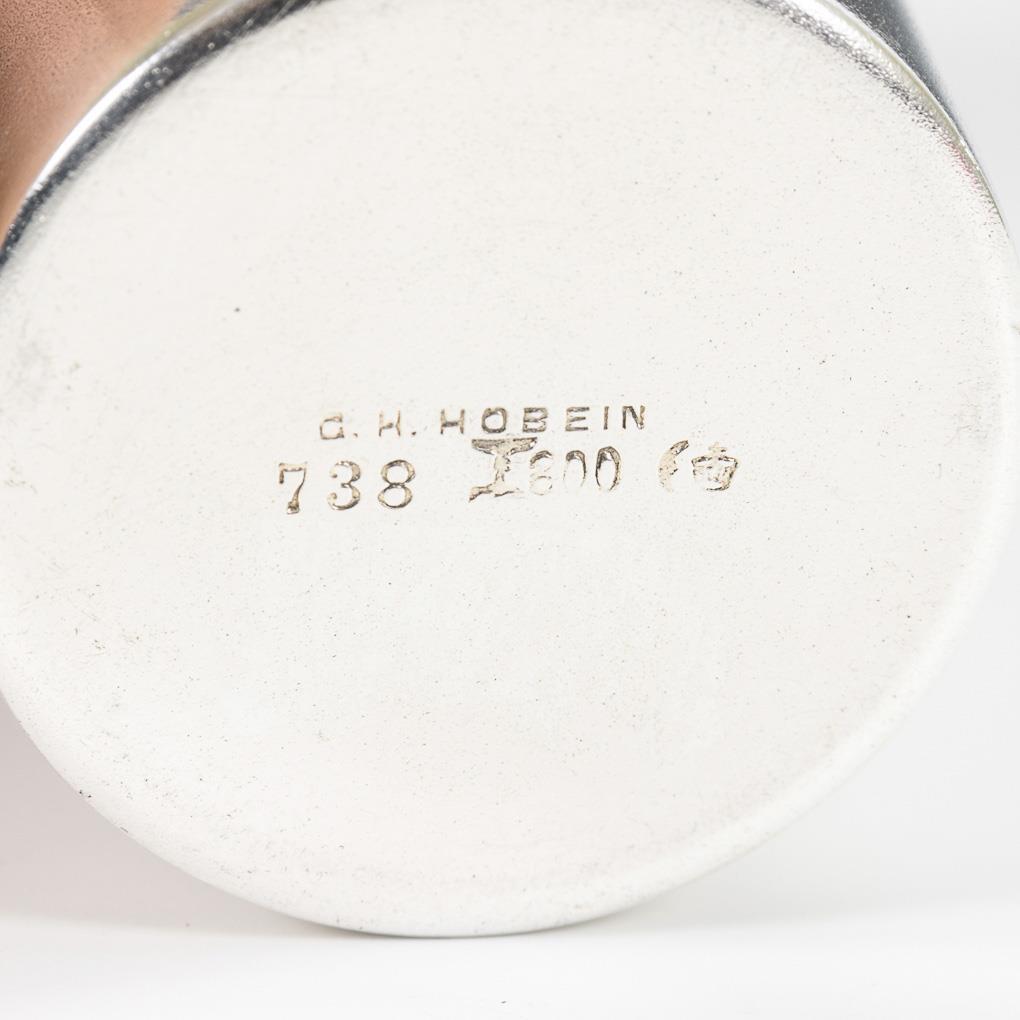 Smooth wall. 1x Koch & Bergfeld: company mark/800/crescent/crown, with jeweller's mark C.H. Hobein, model no. 738, h 9.7 cm. 1x Crescent/Crown/800/Company mark hallmarked, with jeweller's mark Gadebusch, h 9,3 cm.