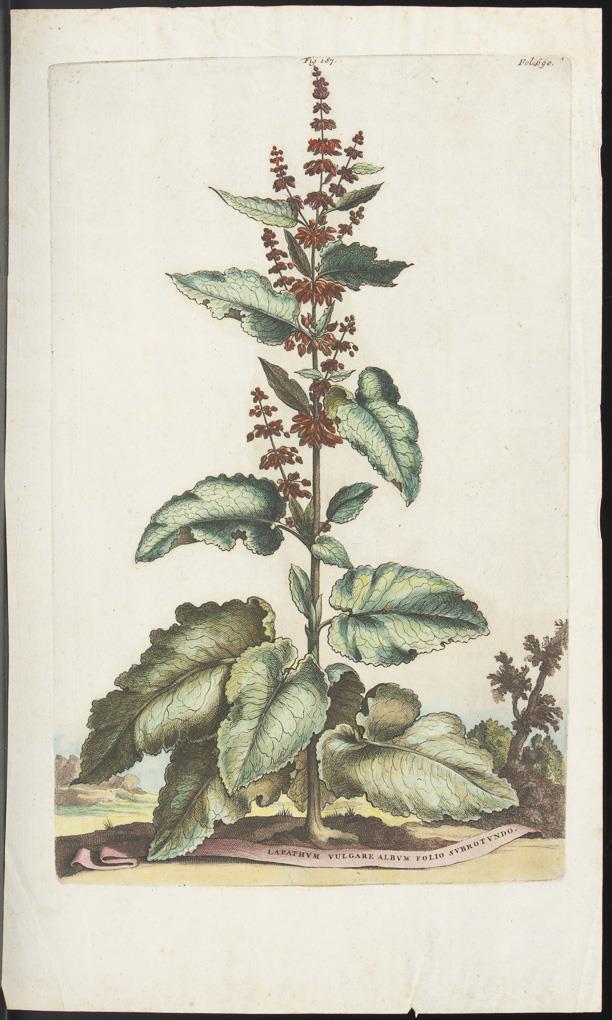 "Fig. 112 fol. 380 Blitum Americanum" | "Fig. 220 fol. 756 Majorana Origanitis" | "Fig. 187 fol. 690 Lapathvm Vulgare Albvm Folio Svbrotvndo"; from "Nauwkeurige beschrijving der aardgewassen [...]", 1696 (digital copy: http://www.biolib.de/munting/index.html). Each foxed.