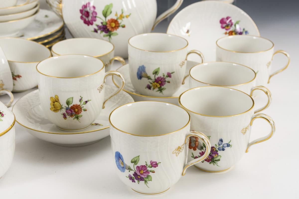 29 pieces. Model "Neuozier". Coffee pot (h 24 cm), mocha pot (h 20.5 cm), teapot (h 16 cm), creamer, sugar bowl, 6 tea cups 6 coffee cups, 6 saucers and 6 breakfast plates.