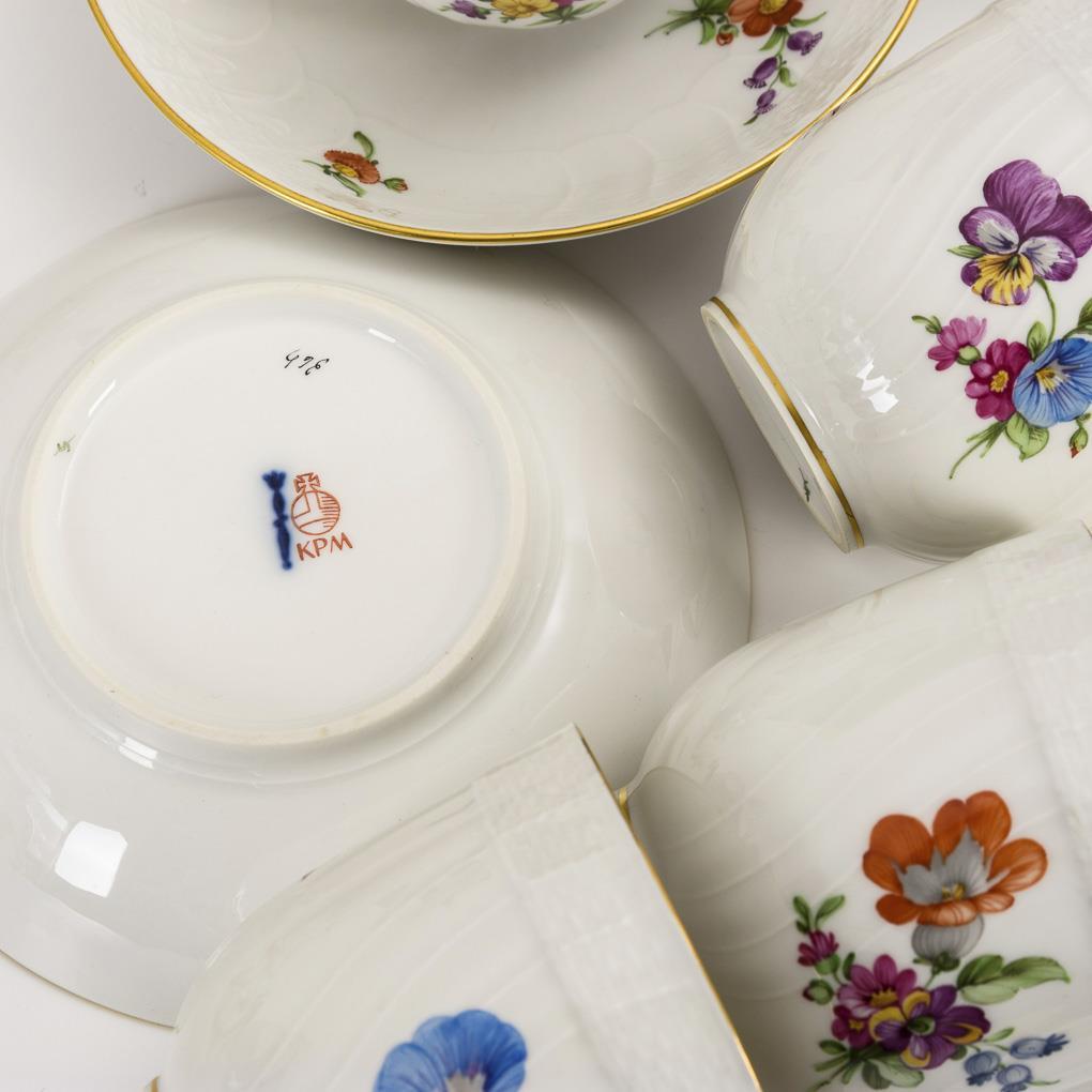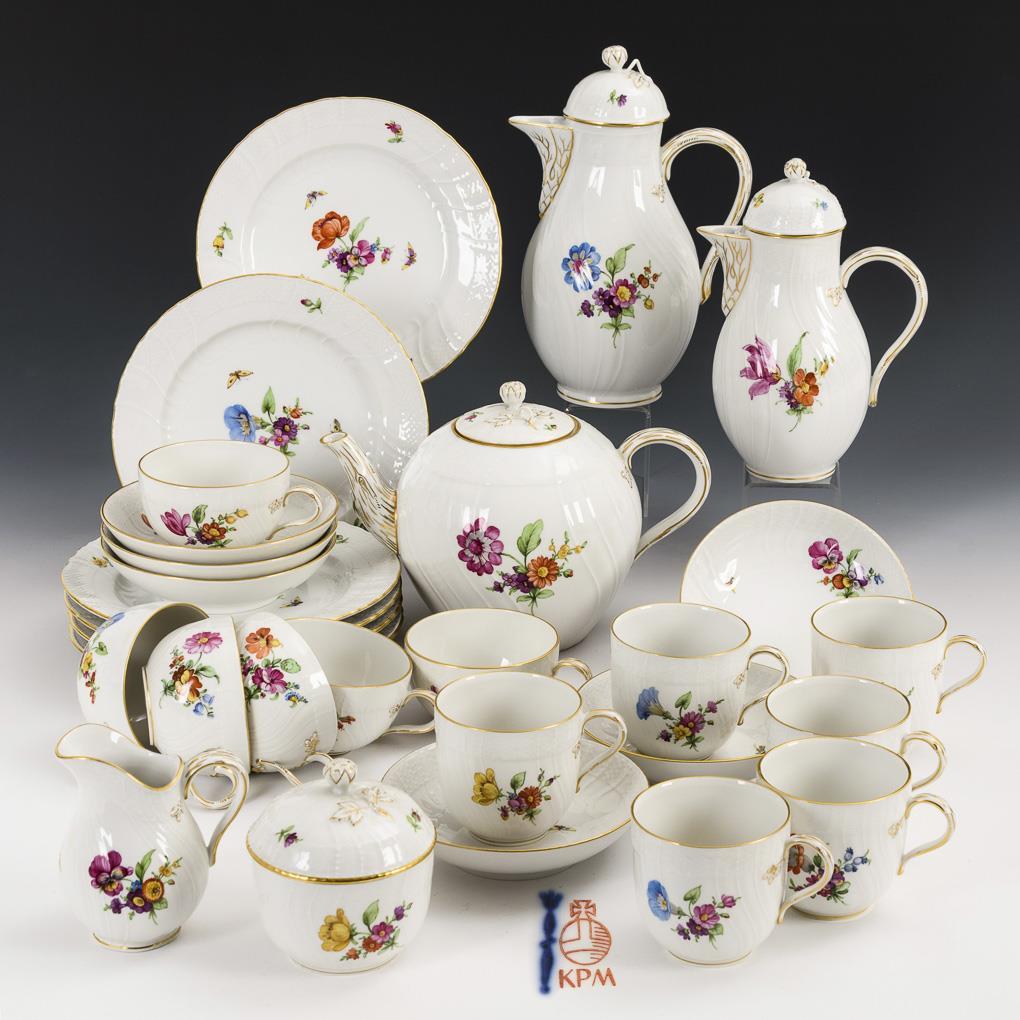 Coffee and tea service with floral and insect painting. KPM Berlin.
