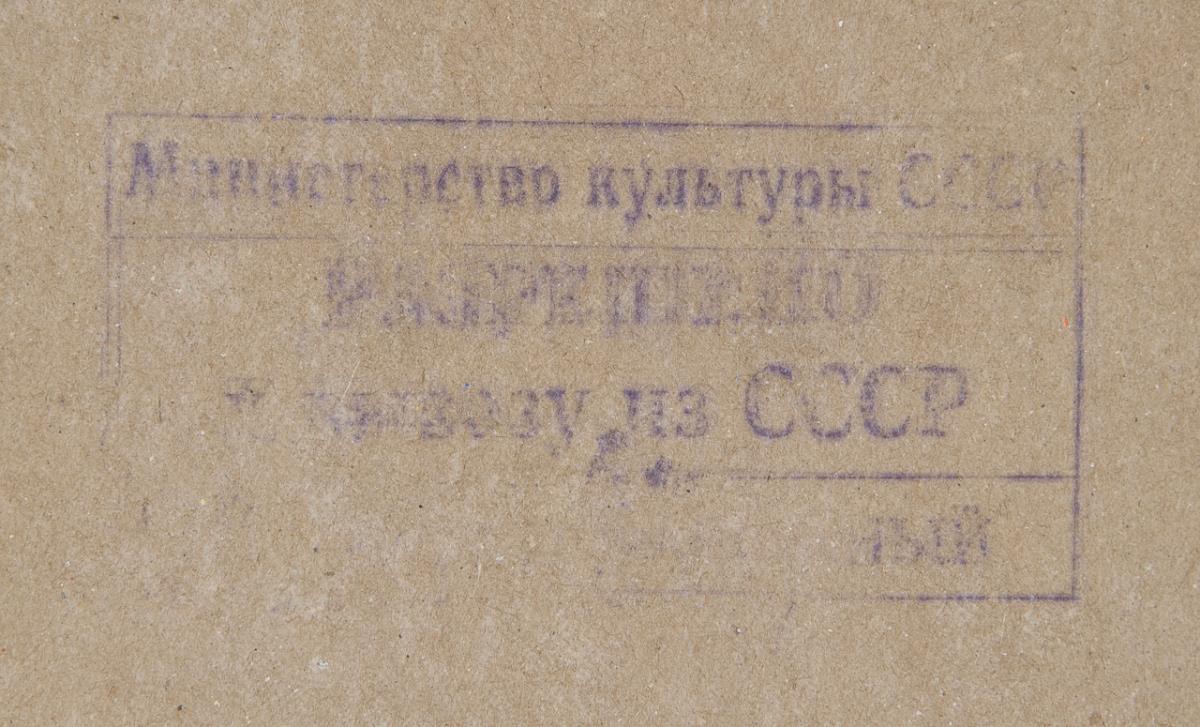 Cyrillic stamp on reverse, Moscow adhesive label. Without frame.