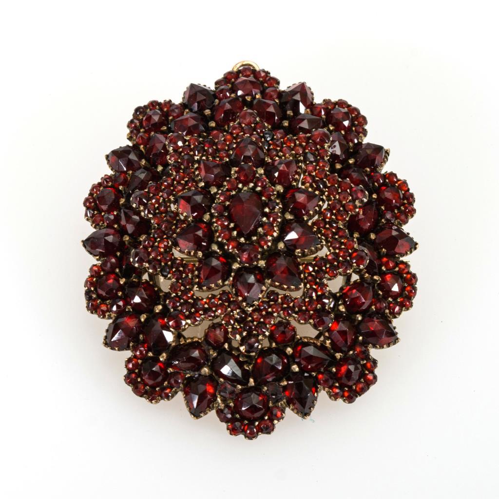 Großes Granatmedaillon-Brosche/Anhänger 2. H. 19. Jh