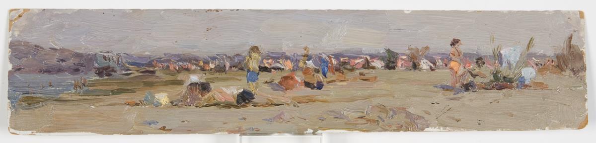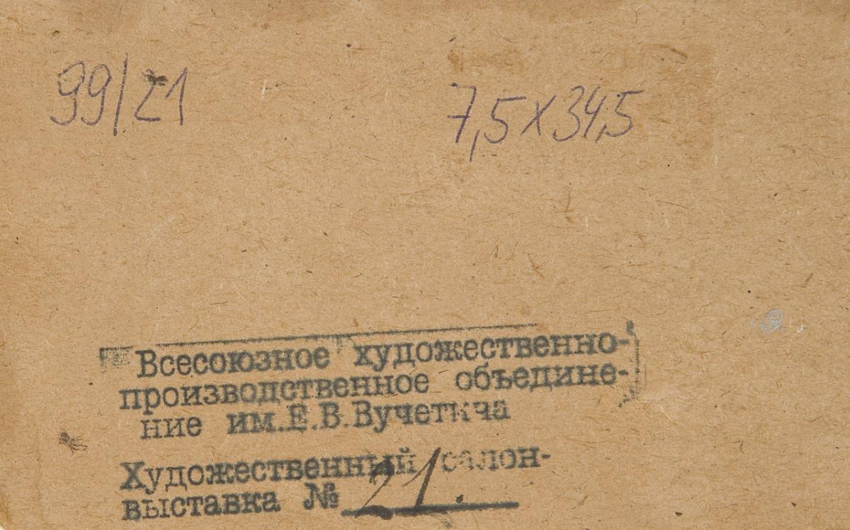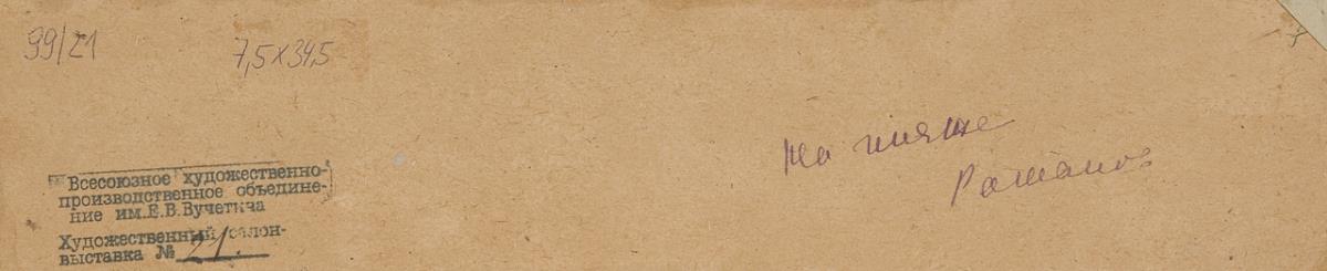 View in extreme, so-called towel format. Cyrillic exhibition stamp on the reverse, inscribed in Cyrillic. Without frame. Damaged at the corners.