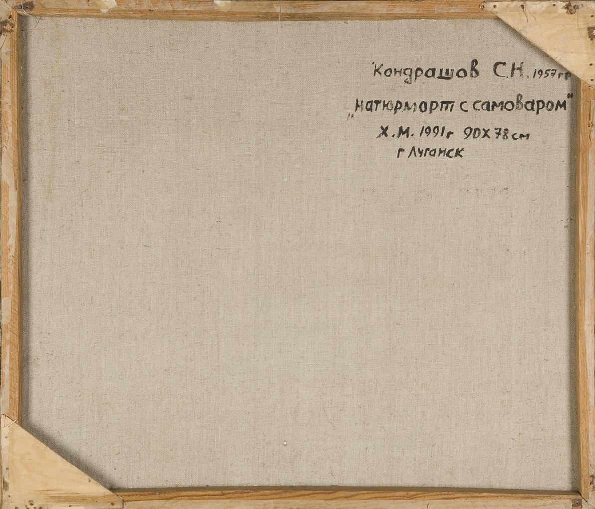 A spontaneously interpreted motif with striking pictorial objects and a dissolution of traditional perspective. Inscribed in Cyrillic on the reverse. Without frame.