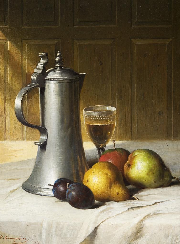 Baumgartner, genre, still life and landscape painter. Studied from 1850 at the Academy in Munich. From 1857 in the studio of Carl von Piloty. Member of the Munich artists' cooperative. Many of his works were sold to the USA * Partner auction Bergmann.