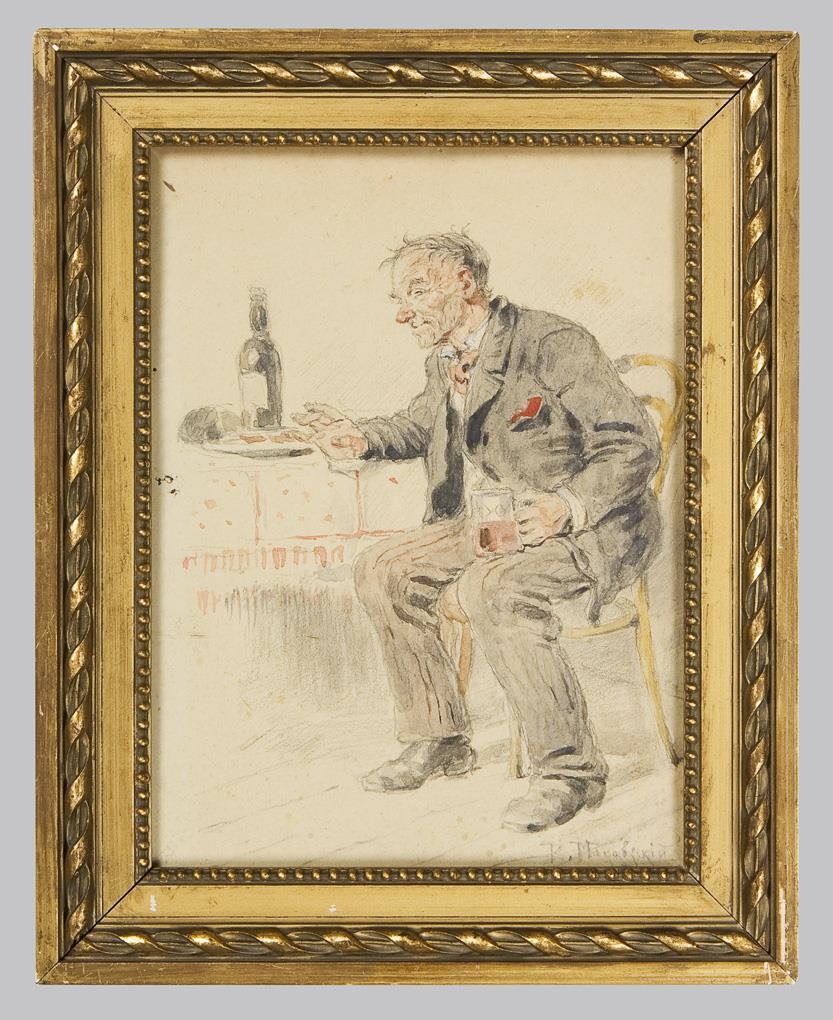 Finely and detailedly drawn genre scene, founded on a profound and accurate observation of the life and circumstances of the common people. Glazed gilt stucco frame.