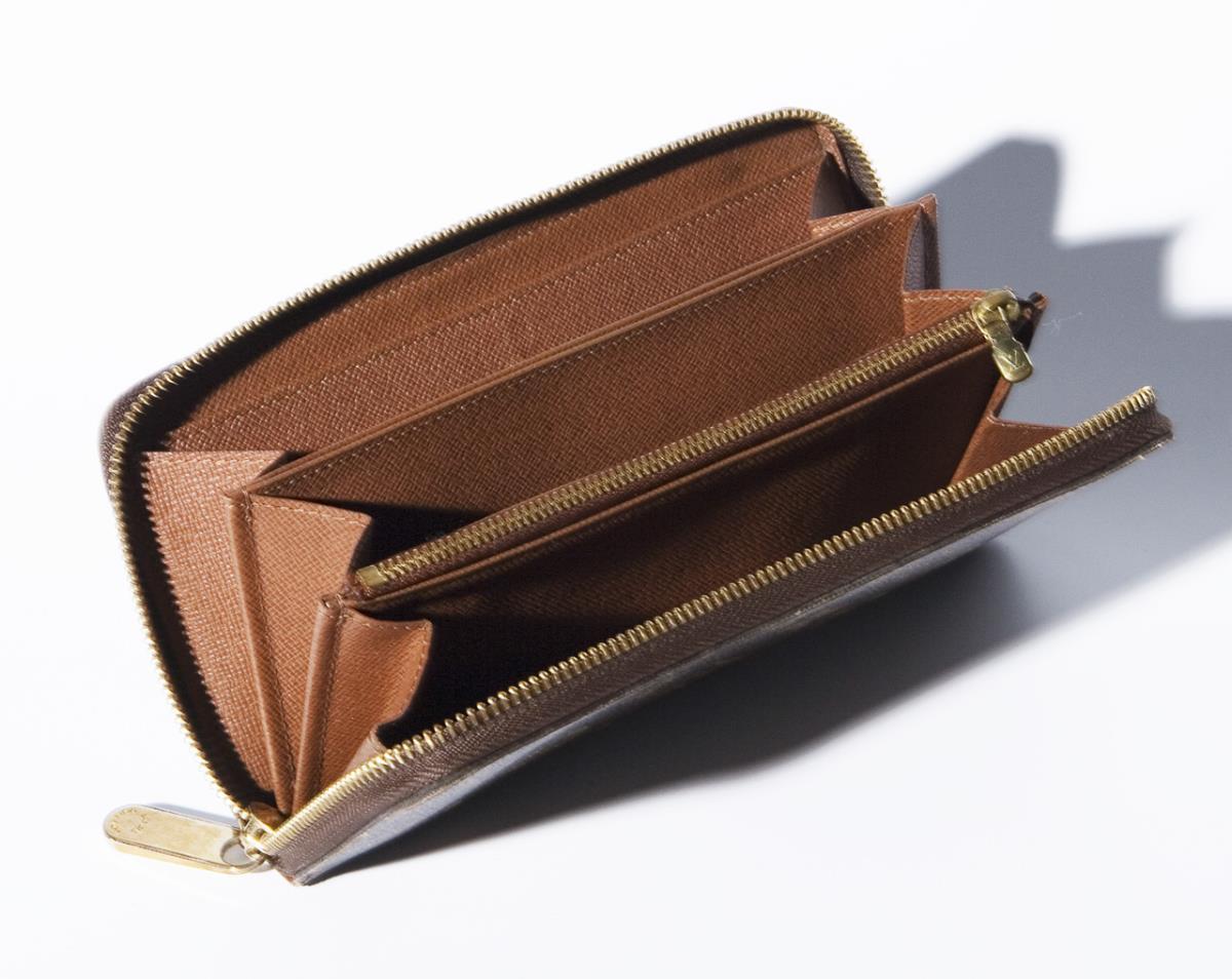 Paris, Made in France. Model: M 60017. classic LV monogram canvas. Zipper closure, leather interior. 3 large gusseted interior compartments, bill compartment, zippered coin pocket, 8 credit card slots, 2 flat interior pockets. Original Louis Vuitton box. Coin compartment inside with signs of use.