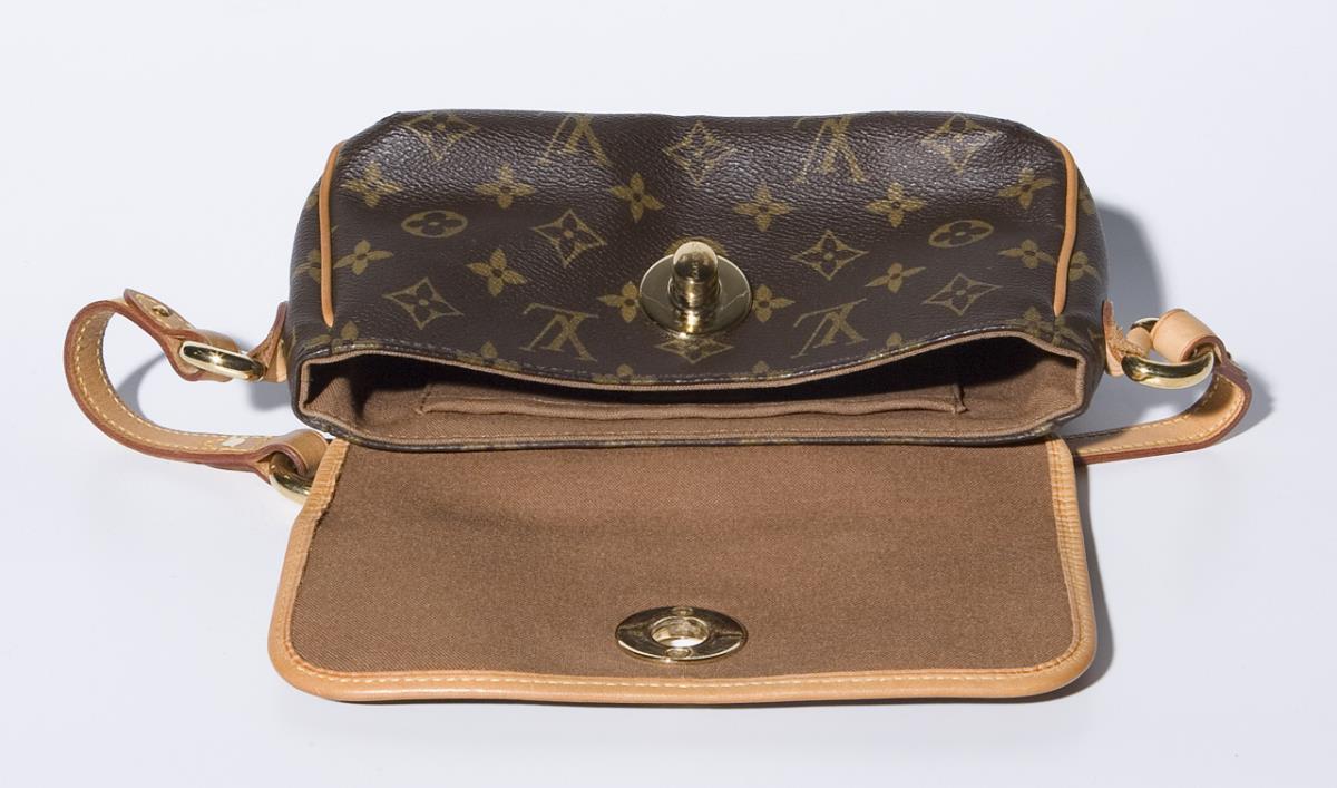 Paris, Made in France. Model: M 40078. classic LV monogram canvas with leather trim. Front flap with twist closure. Elaborate leather handle with 4 large eyelets. Interior textile, 1 large main compartment, 1 flat interior compartment.