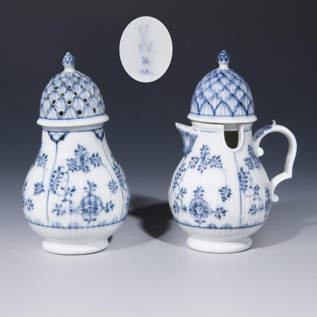 Marcolini sugar shaker, mustard pot. Meissen.