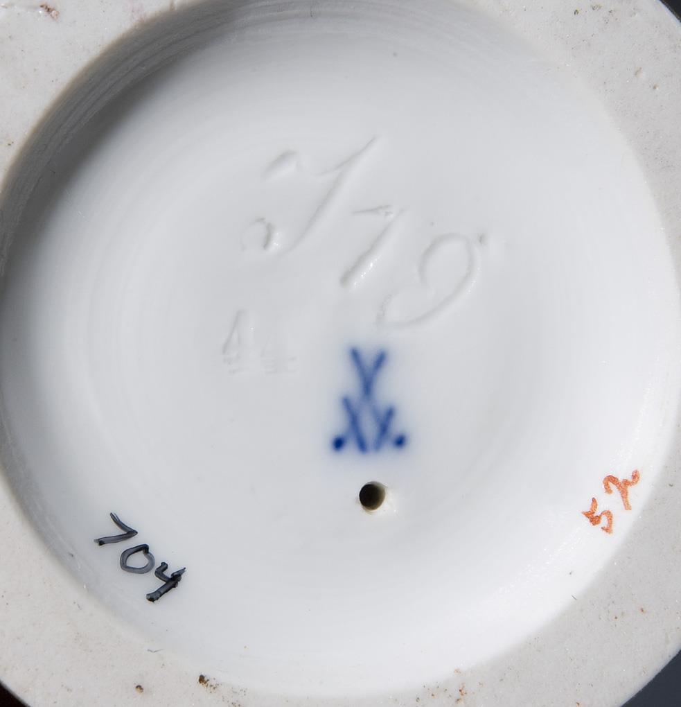 Model by Johann Carl Schönheit 1786. Colourfully painted, gold painted. Incised mark, press mark, painter's mark, sword mark.