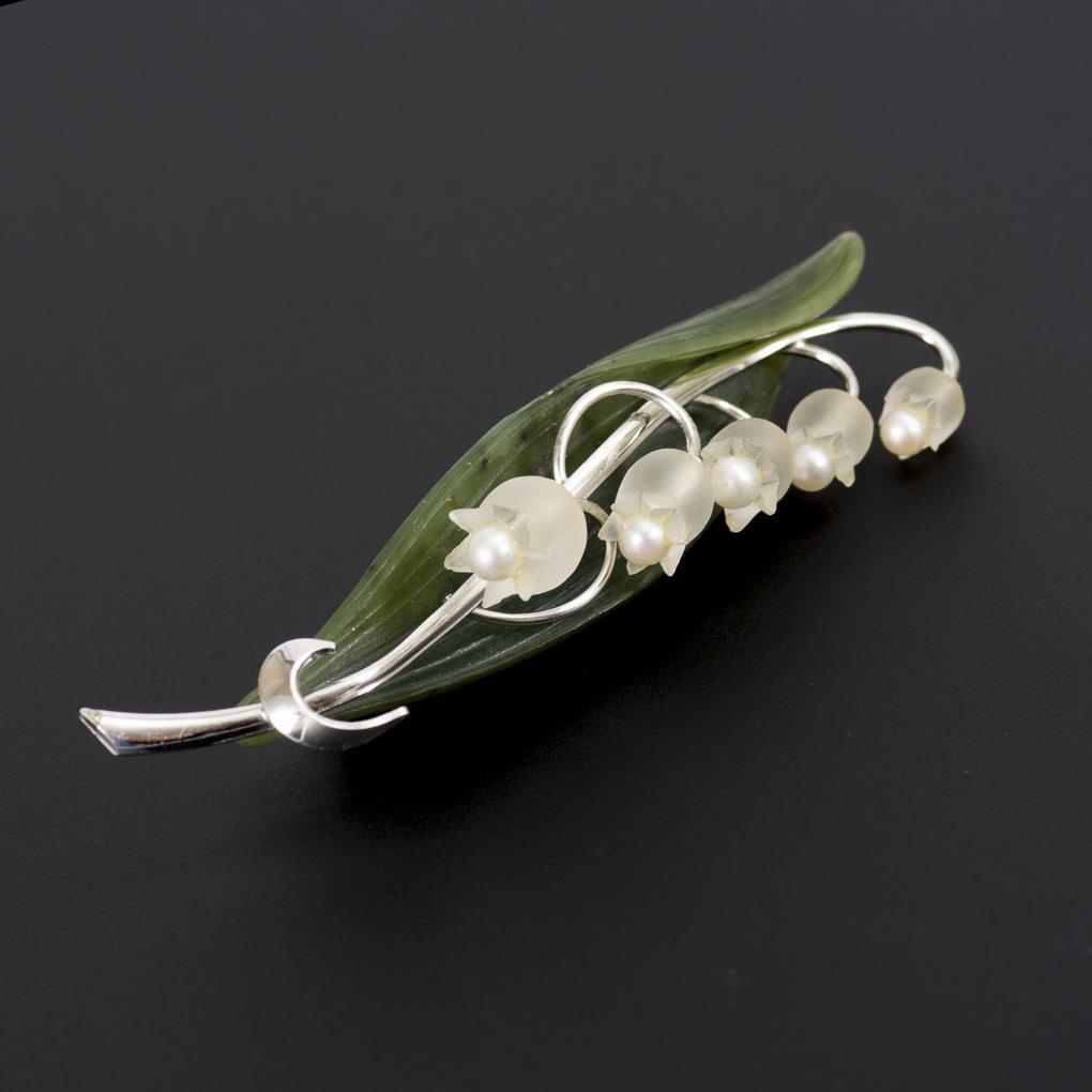 Rock crystal and nephrite, 5 small pearls.
